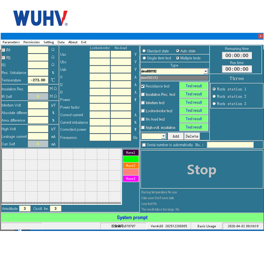 | Inter-turn Test | 400~3000Vp | Class 5.0 | Wavefront time 0.2μs, automatic judgment of adjacent turn-to-turn conditions at 1/200 turns | |