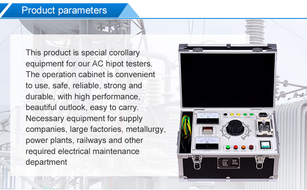 XC/TC Series test transformer control box (console) is a special auxiliary equipment for series test transformer produced by Wuhan UHV company,The control box (console) is easy to use and maintain、Superior performance, safe and reliable、Beautiful appearance and structure、sturdy and durable、Easy to move and so on.It's a power supply company、large factory、metallurgy、power house、Railway and other necessary equipment needed by electric power maintenance department.